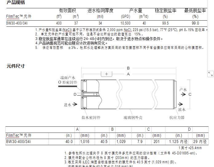 FilmTec™ BW30-400/34i 元件經證明,具有優(yōu)異的性能: