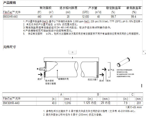 FilmTec™ BW30HR-440 元件經證明,具有優異的性能: