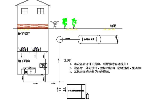 地下廚房餐廳排污示意圖