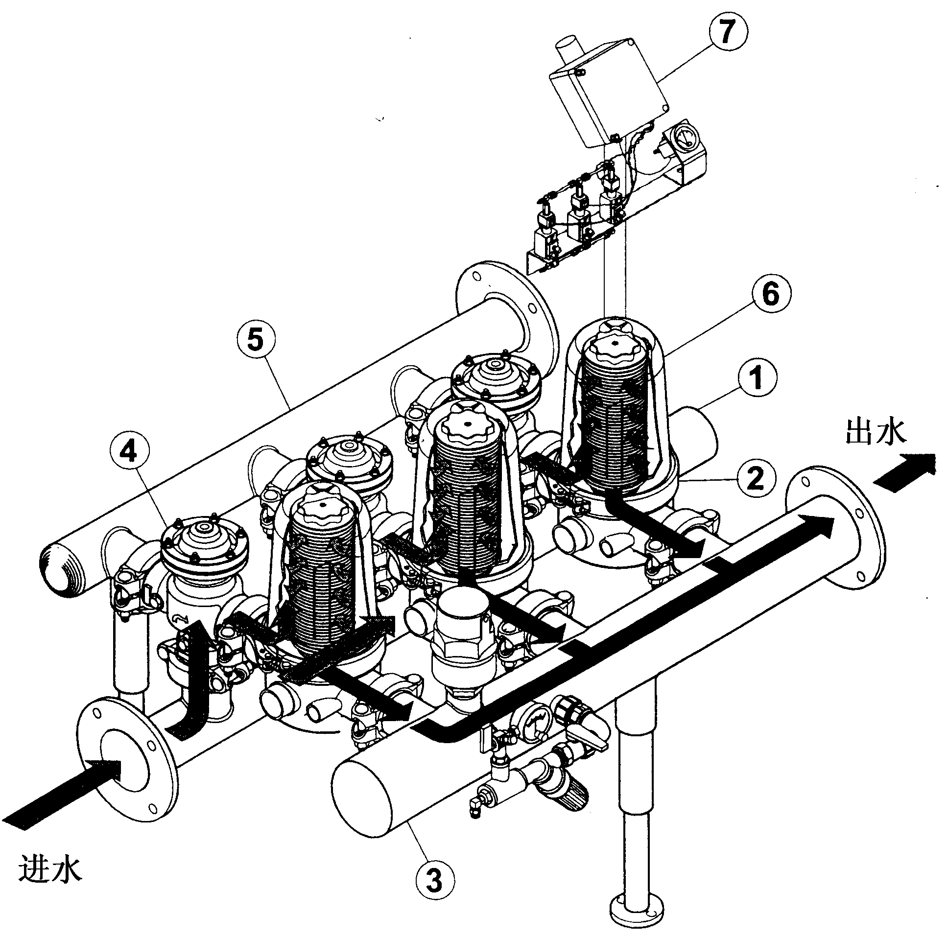 5)總排污口 6)過濾單元(盤片組)